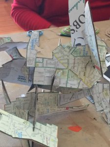 Here are some of the works in progress from the Ashfield Sculpture workshop, I held on Sunday. The workshop explored the visual language of maps as a source for making inspiration as part of the my artist in residency program at Thirning Villa, in Sydney’s inner west.